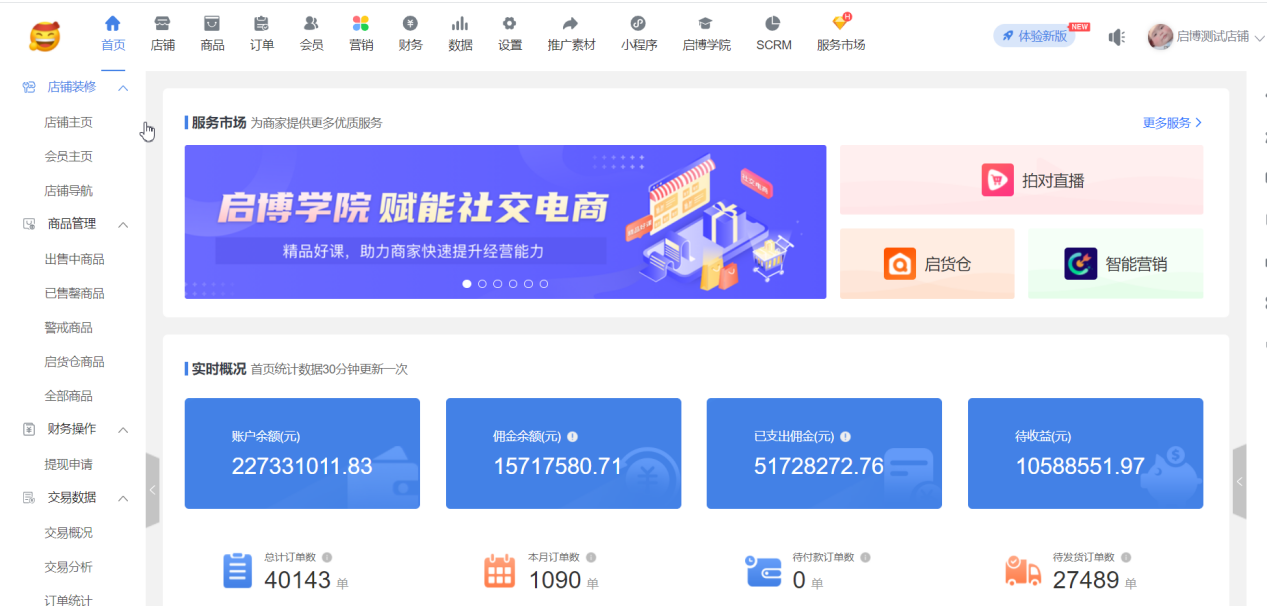 現(xiàn)邏輯:系統(tǒng)后臺(tái)頂部菜單新增“啟博學(xué)院”入口,代理商客戶后臺(tái)不展示