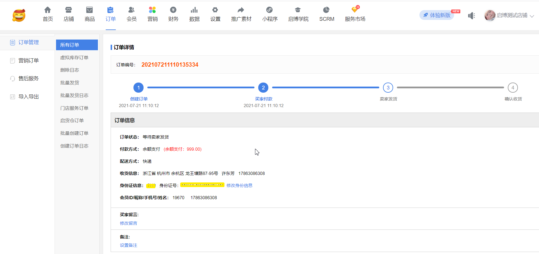 (4)后臺(tái)訂單詳情顯示姓名和身份證號(hào)碼