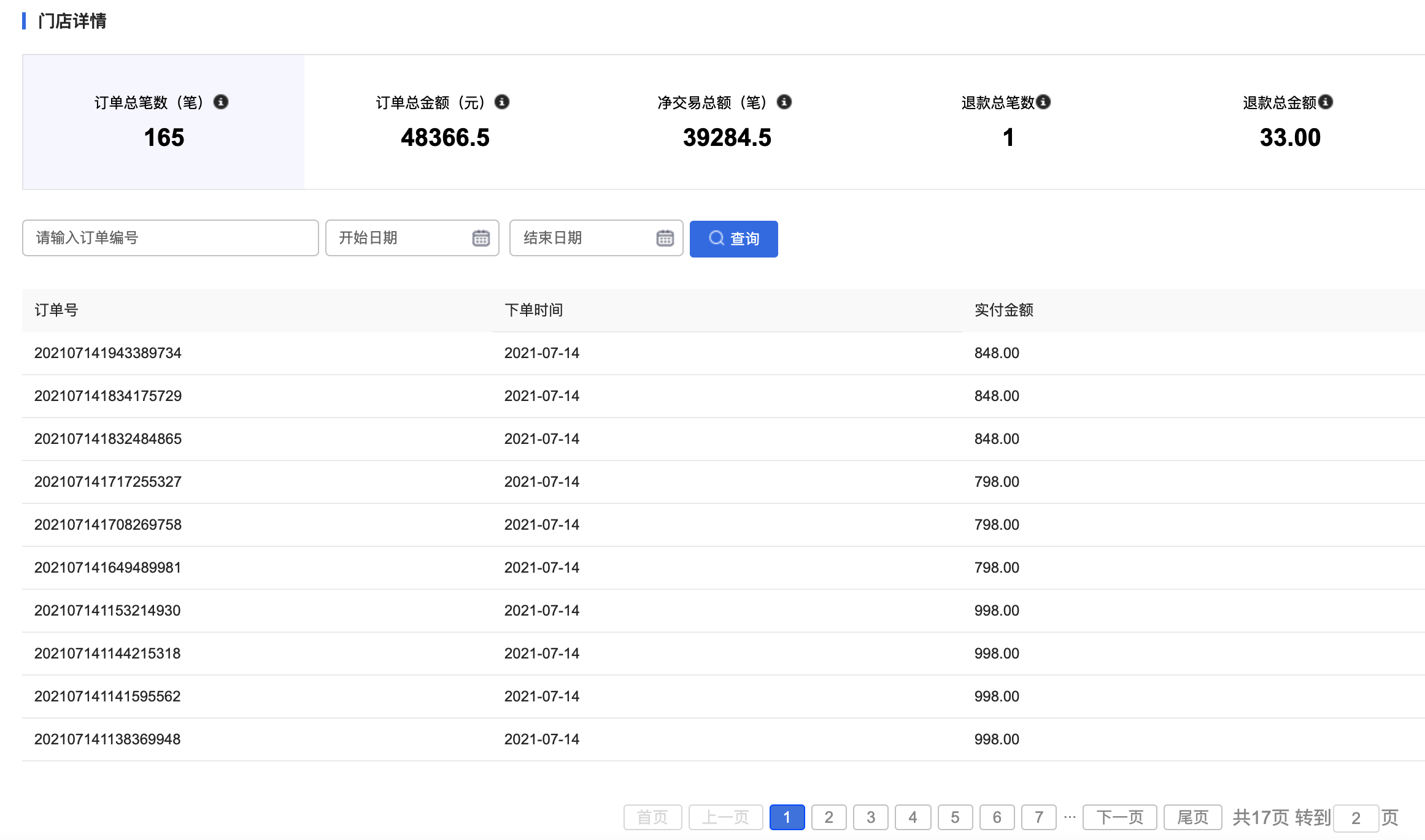 用戶場(chǎng)景:新增門店訂單筆數(shù)、訂單金額等數(shù)據(jù)統(tǒng)計(jì),方便商家核對(duì)統(tǒng)計(jì)門店數(shù)據(jù)