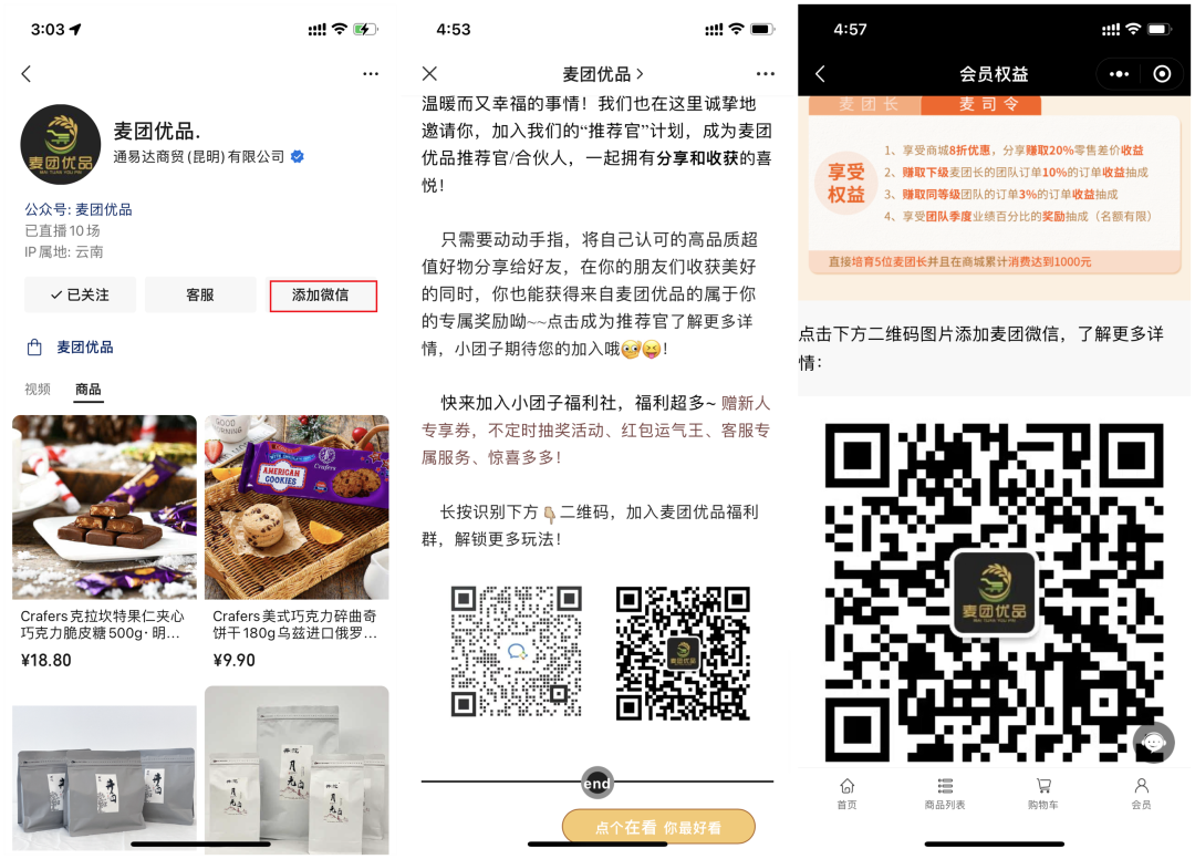 麥團優(yōu)品基于微信域內(nèi)全鏈路打通,把私域運營聚焦到“視頻號+企業(yè)微信+小程序+社群”的組合上。