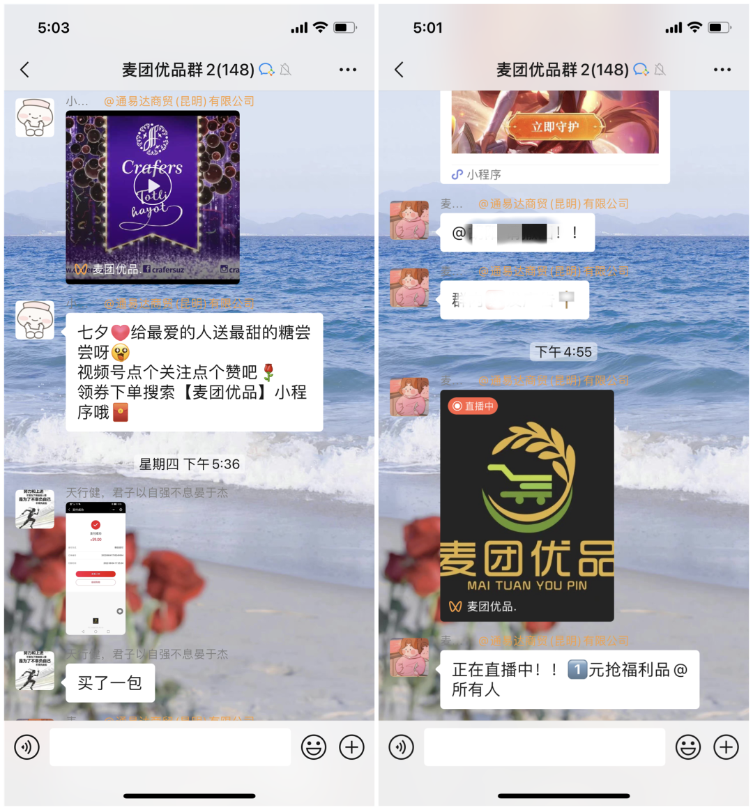 在社群方面,麥團優(yōu)品已經(jīng)基于沉淀了多個麥團優(yōu)品好物微信社群和團長群。