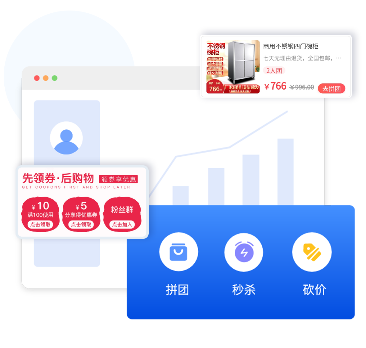 裂變拉新拼團(tuán)、秒殺、砍價(jià)、群接龍等多種拉新玩法,實(shí)現(xiàn)商城粉絲倍增