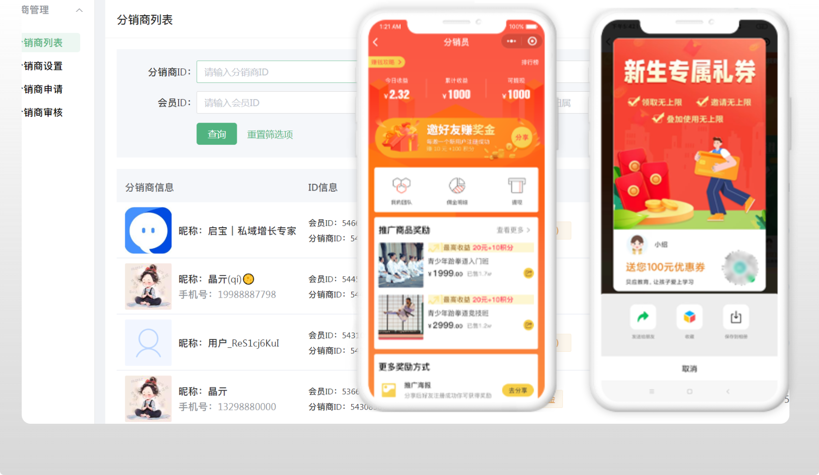 通過小程序的分銷功能,快速實現 學*思同款邀約有獎、學員分銷、老師分銷、家長分銷、異業聯盟等社交裂變招生玩法,推薦返傭,以老帶新,自動分賬,引爆家長朋友圈,裂變千萬生源。