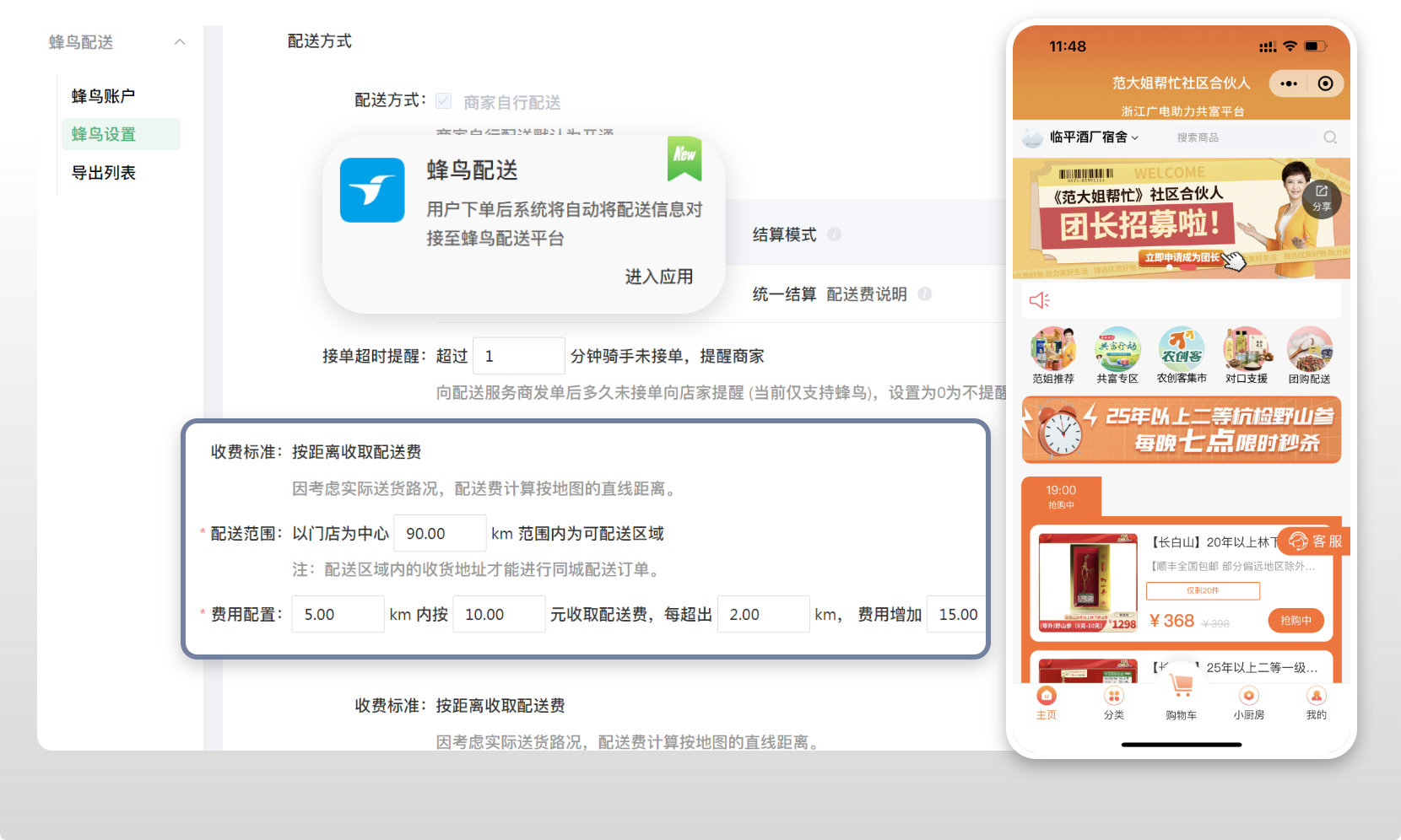 同城團(tuán)購(gòu):蜂鳥(niǎo)同城配送一鍵接入